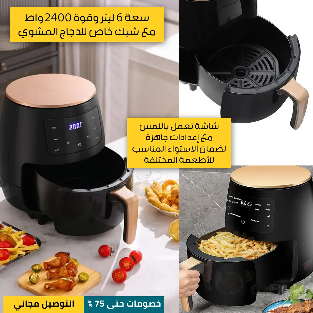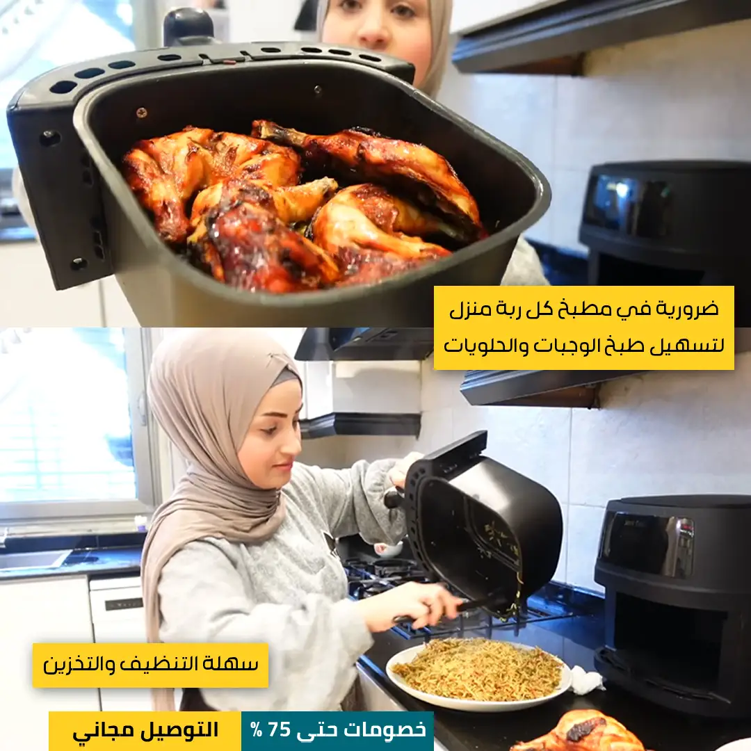- سعة 6 ليتر وقوة 2400 واط مع شبك خاص للدجاج المشوي