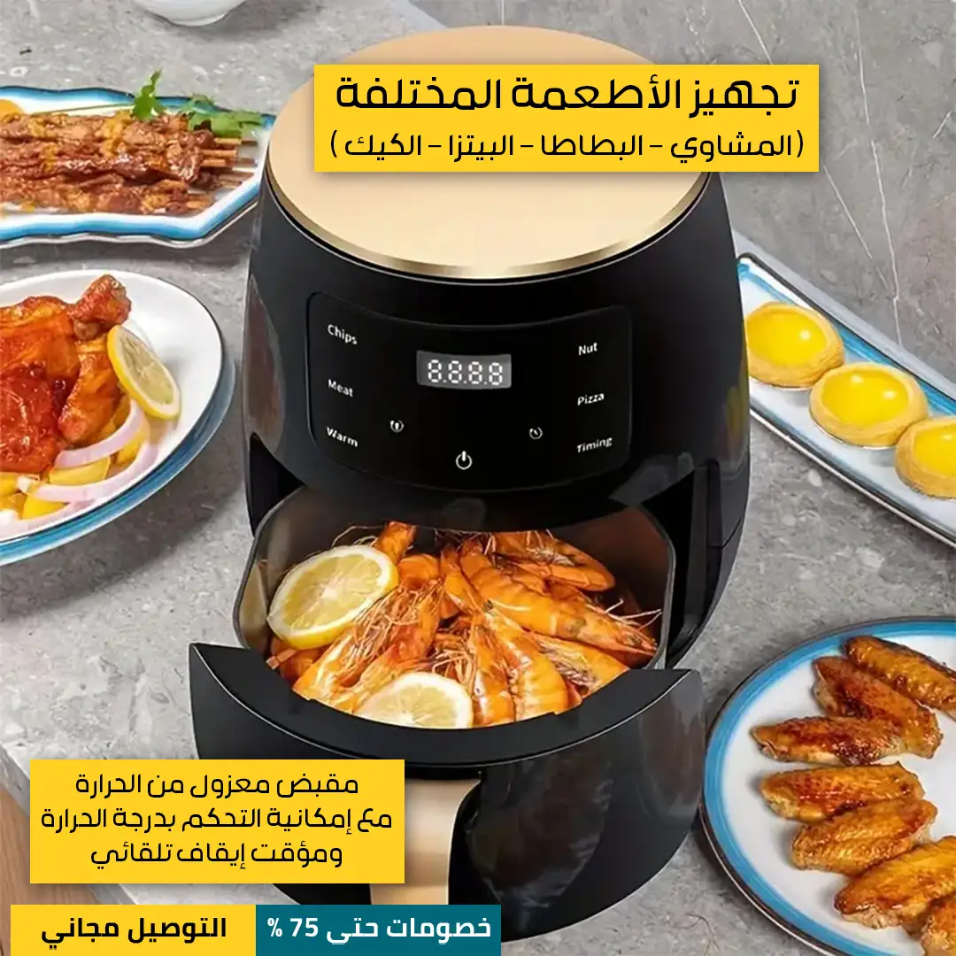 - تمتع بوجبات صحية خالية من الكوليسترول بتقنية الهواء الساخن الرائعة