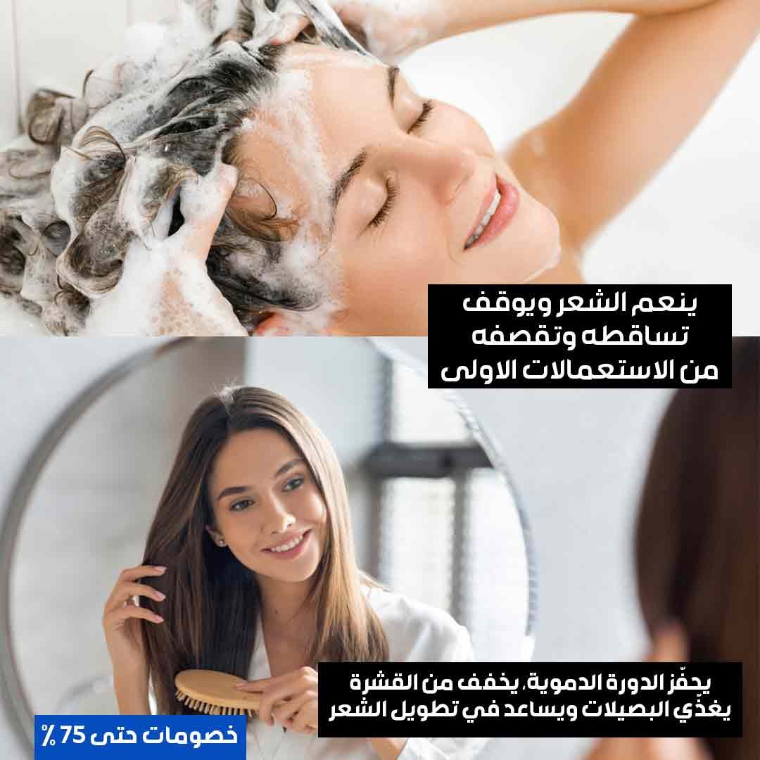 - ينعم الشعر ويوقف تساقطه وتقصفه من الاستعمالات الاولى