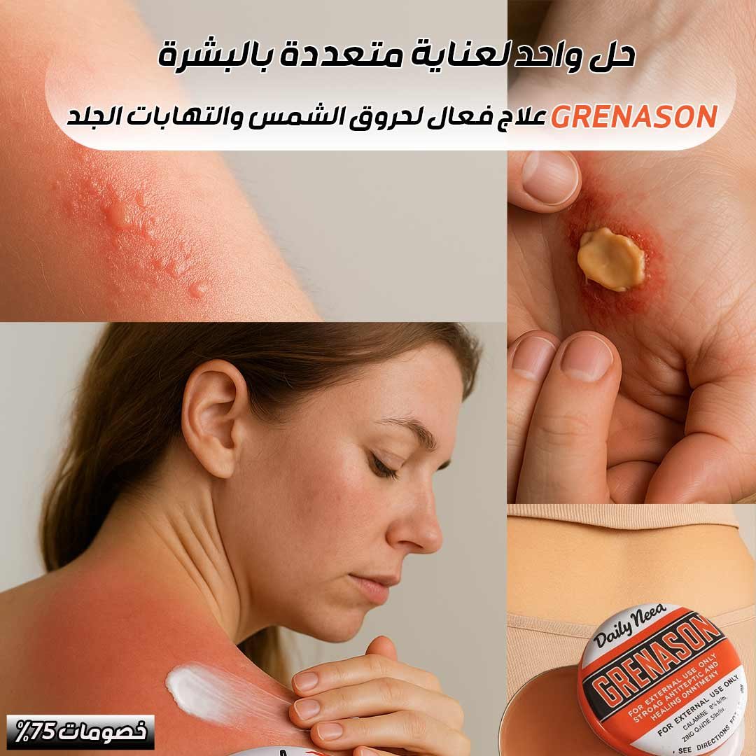 راحة فورية وعناية متكاملة للبشرة والمناطق الحساسةكريم Grenason هو تركيبة علاجية فريدة متعددة الاستخدامات، صُممت لتوفير راحة سريعة وفعالة من مجموعة متنوعة من مشاكل الجلد الشائعة. من البواسير المزعجة إلى الحروق والالتهابات والتقرحات، يقدم هذا الكريم علاجًا شاملاً في عبوة واحدة صغيرة وفعالة.