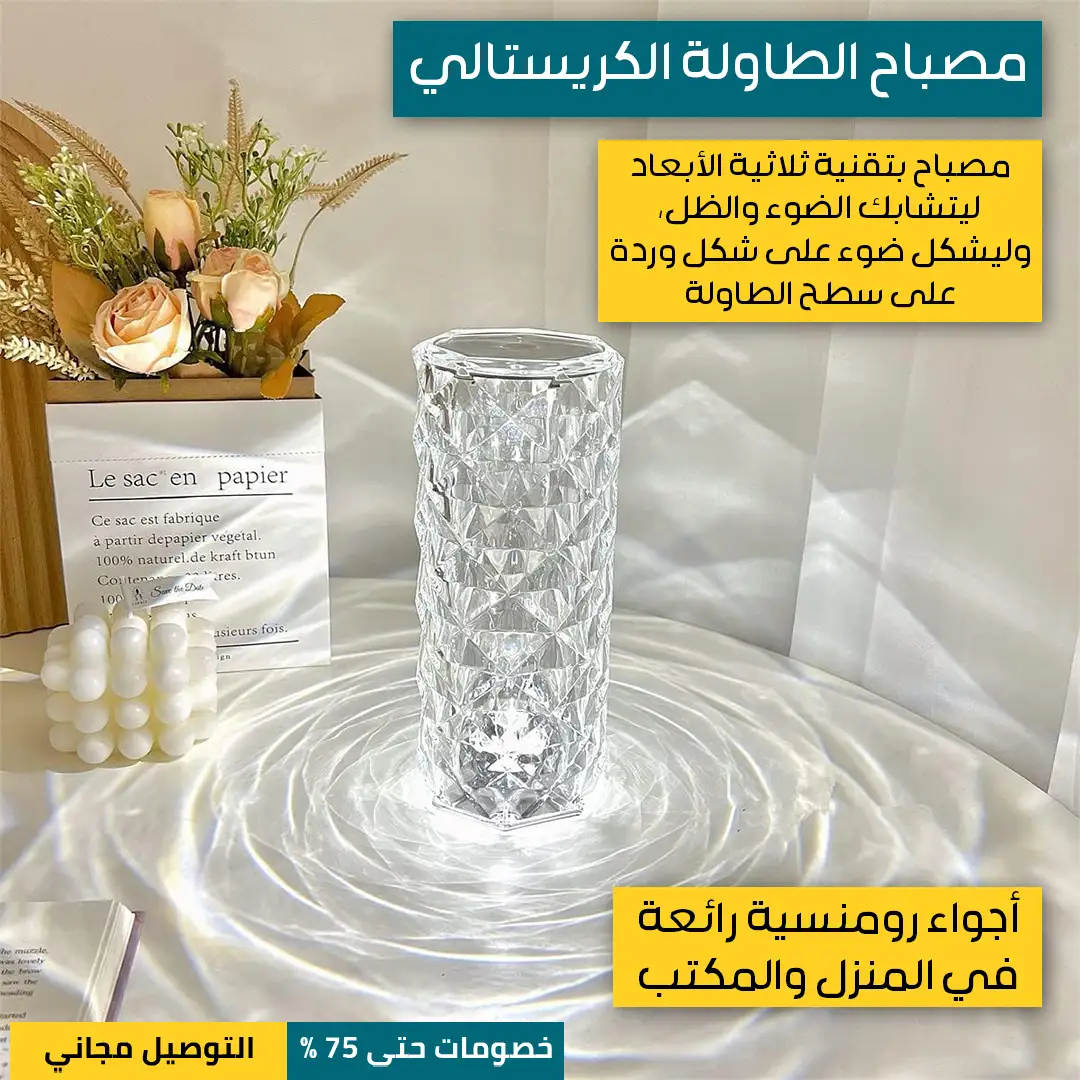 - مصباح بتقنية ثلاثية الأبعاد ليتشابك الضوء والظل، وليشكل ضوء على شكل وردة على سطح الطاولة