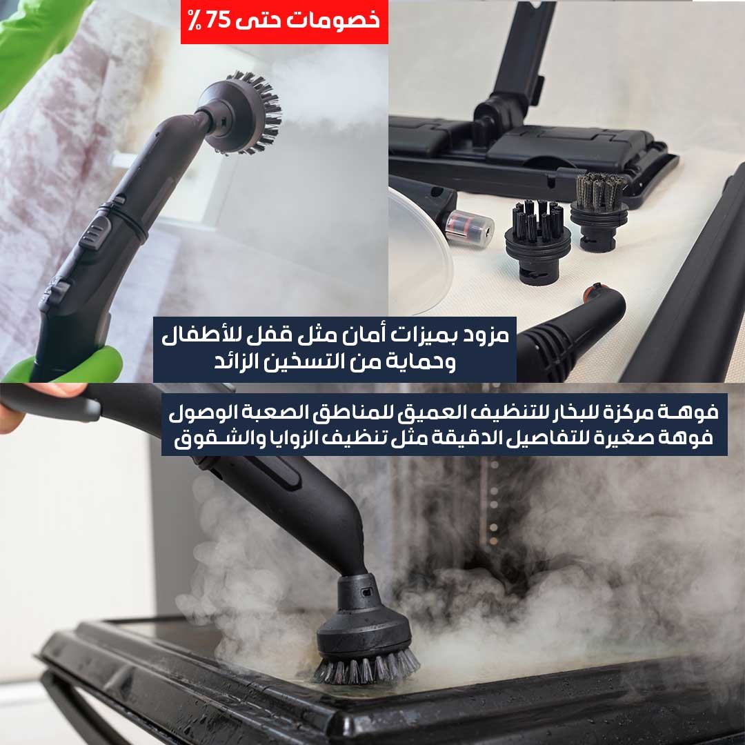 - جهاز تنظيف وتعقيم بالبخار يعد واحدًا من الأجهزة المفيدة للتنظيف العميق والتعقيم، ويأتي مع 12 ملحقًا مختلفًا لتلبية احتياجات متعددة.